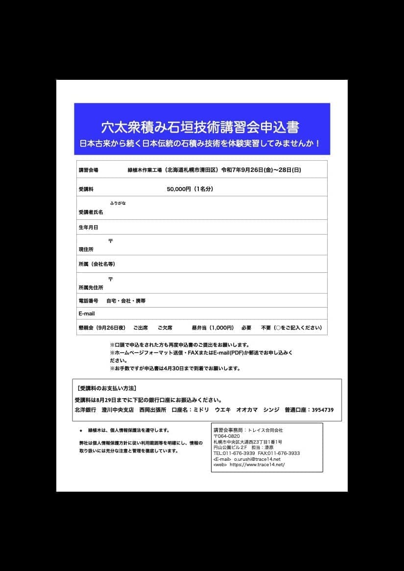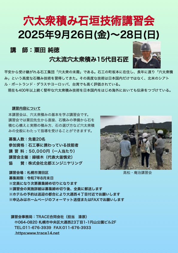穴太衆積み石垣技術講習会を札幌で実施します。